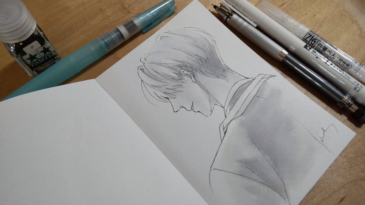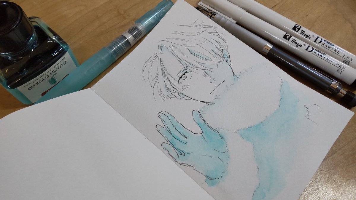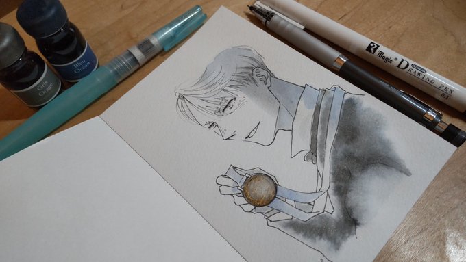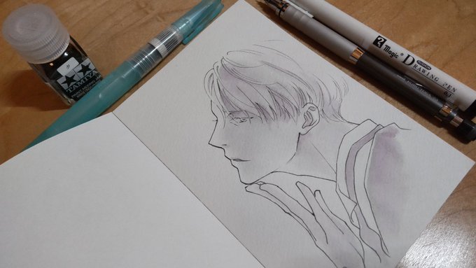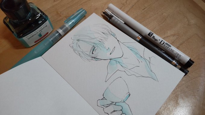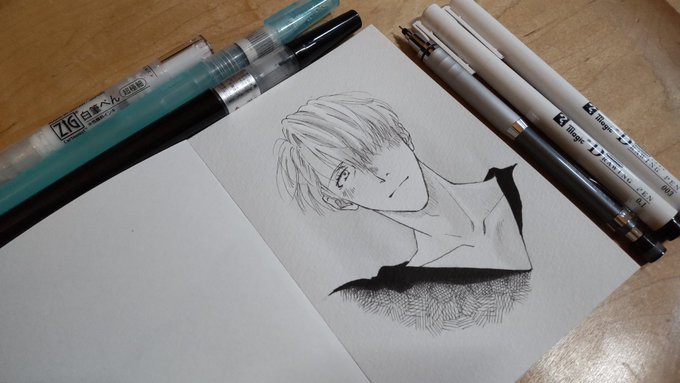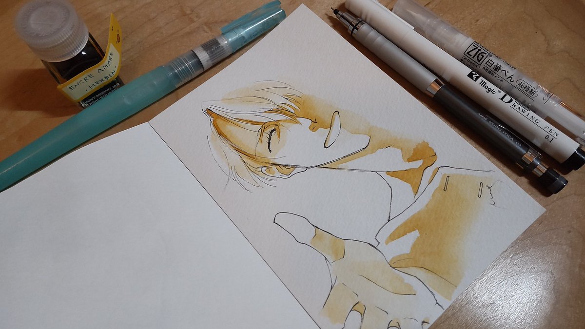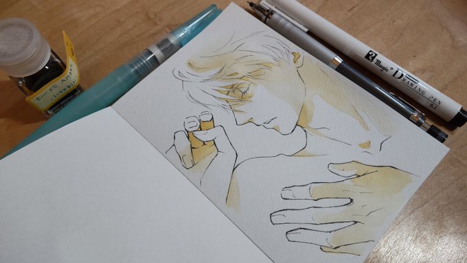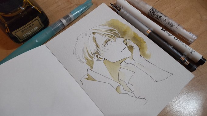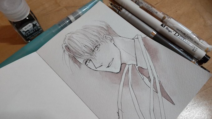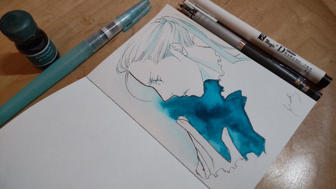 あなろぐおえかき🖌️ 若ヴィはやっぱりこの色を使いたくなる…… #inktober #inktober2022 #Inktober_PerfectChallenge #kuretakeinktober2022_giveaway 呉竹フィス水筆ぺん 大 セリース