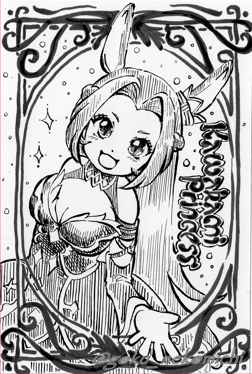 お題:魅力的 「お手をどうぞ、王子様?」 このお題は絶対にカワプリちゃんを描こうと思ってました…💛 インクトーバー、残り1週間切った!最後まで頑張ります~ #inktober2022 #Inktober_PerfectChallenge #アナログ絵 #ウマ娘 #カワカミプリンセス
