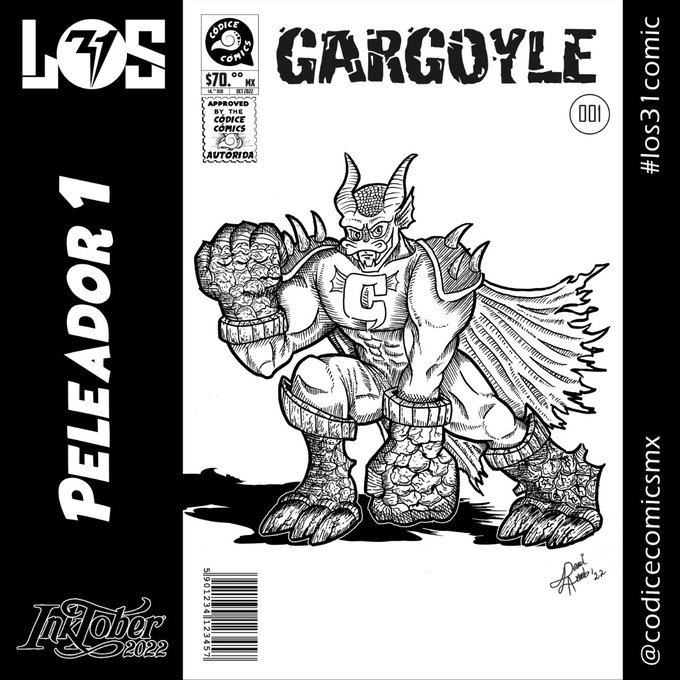 #los31comic Primer participante dentro del torneo de "LOS 31" Recibamos a "EL GÁRGOLA" - 1. 90mts de altura -150kg de peso -Puños y pies de piedra labrada -Resistente a la interperie #inktober #inktober2022 #inktoberday1gargoyle #gargoyle