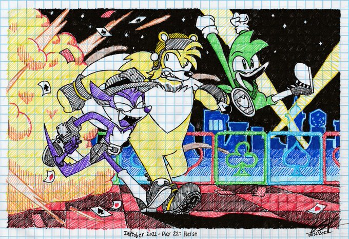 Inktober 2022 - Day 22: Heist. "NYAH HA HA HA HA! forget the Craps Table we already hit the Jackpot!" #Inktober #Inktober2022 #InktoberDay22 #InktoberHeist #Heist #FangTheSniper #NackTheWeasel #BeanTheDynamite #BarkThePolarbear #Sonic