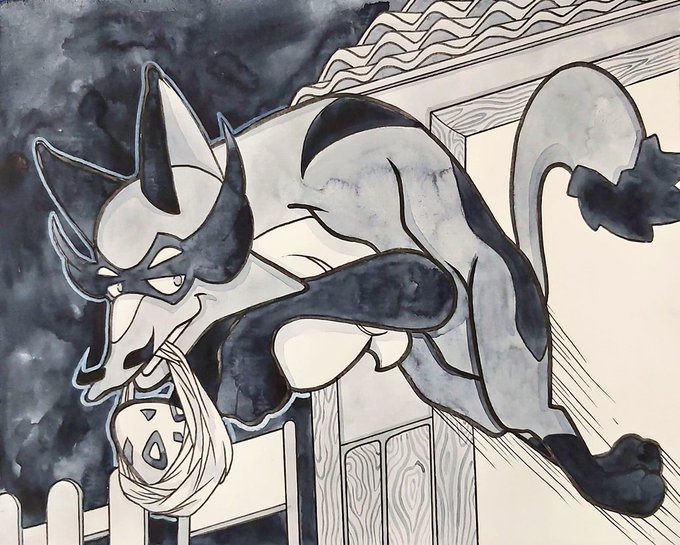 Inktoberday 22: Heist = Thievul #ink #inktober #INK #inktober2022 #inktoberday22 #blackwhite #thievul #pokemon #pkmn #anime #manga #gaunux #togepi #heist #Art #drawing #illustration #traditionalart #pension #pokepension #night #fox