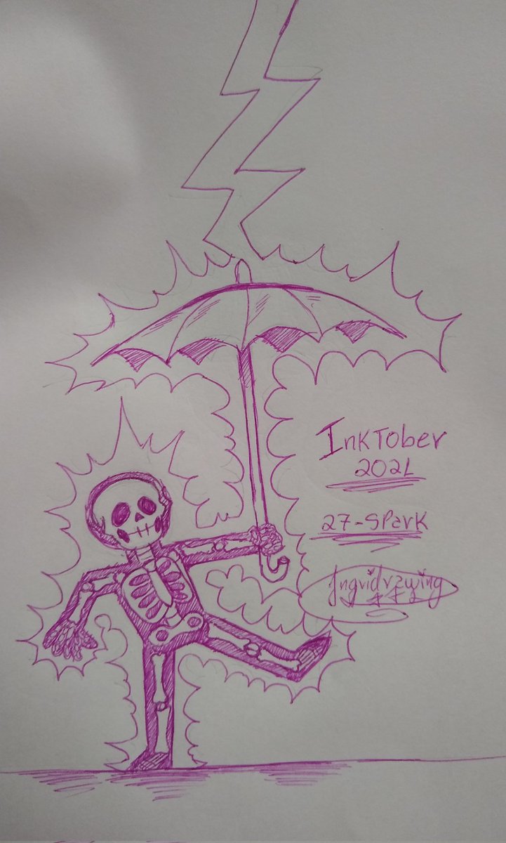 Hoje o tema foi "Spark"/"faísca", pensei em fazer um clássico de desenho animado, alguém tomando um raio num guarda-chuva kkkk. #Inktober #inktober2021 #inktober2021day27 #inktober2021spark #inktoberday27 #inktoberspark #inktoberday27spark