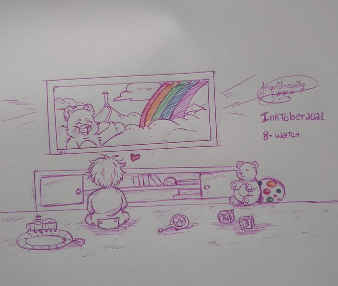 Tema de hoje foi watch traduzindo seria assitir, pensei em fazer crianças assistindo algum seriado infantil kkk não tive muitas ideias para esse tema. #inktober2021 #Inktober #inktober2021day8 #inktoberwatch #inktoberday8watch #inktober2021watch