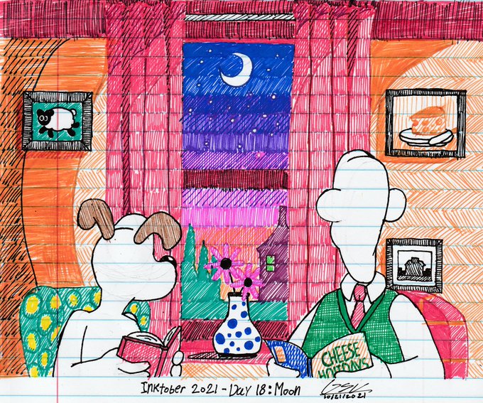 Inktober 2021 - Day 18: Moon. "Everybody knows the Moon is made of Cheese..." #Inktober #Inktober2021 #InktoberMoon #InktoberDay18 #Moon #WallaceAndGromit @aardman