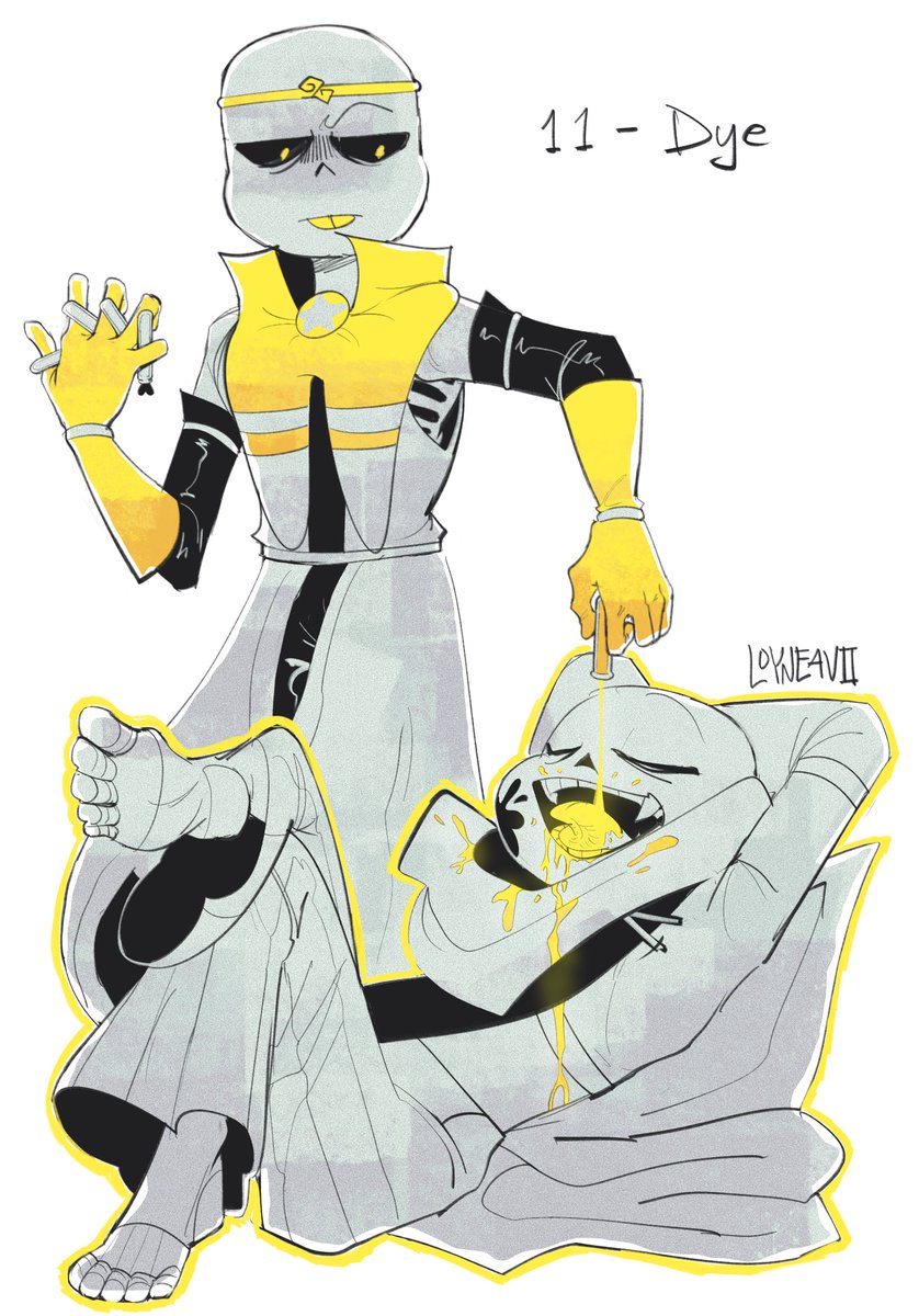 Inktobertale Day 11 - Dye Ink is now yellow! Attacks are increased, defenses lowered. #inktobertale2022 #inktobertale #inktober #undertaleau #inksans #dreamsans