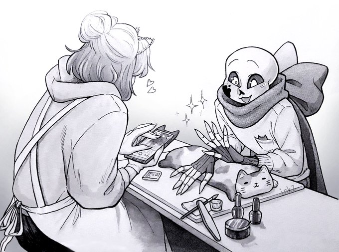 Inktobertale Day 23 - Varnish I think he likes it. #inktobertale2022 #inktobertale #inktober #undertaleau #inksans #dreamsans