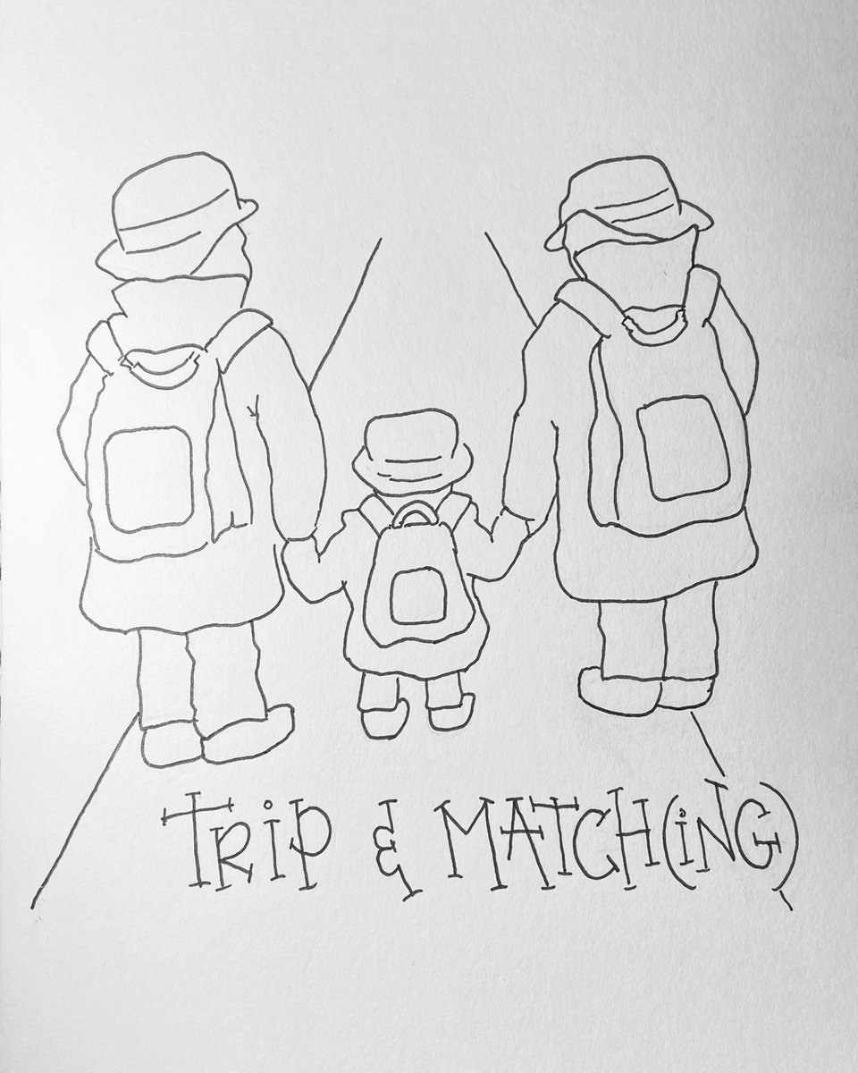 Days 7 + 8… This is (very loosely) based on a photo of my Mum and Dad taking my wonderful niece for a walk way back in 2015 Prompt 7: Trip Prompt 8: Match The doodling continues #Inktober #Inktober22 #Inktober2022 #Trip #Match #DaySeven #DayEight #InkwellFilter