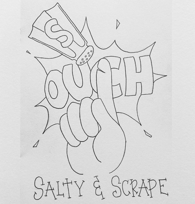 Days 17 + 18… Lesson learnt; rubbing salt in your own wound = OUCH!! Prompt 17: Salty Prompt 18: Scrape The doodling continues #Inktober #Inktober22 #Inktober2022 #Salty #Scrape #DaySeventeen #DayEighteen #InkwellFilter