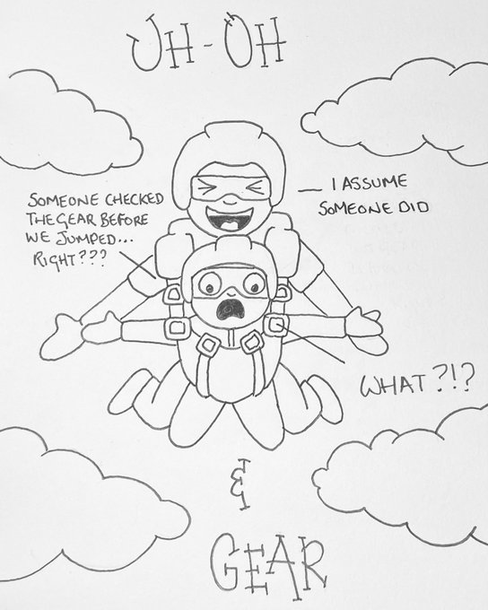 Days 29 + 30… “Take your parachute and jump!! If the wind don’t catch you, I will!!” Prompt 29: Uh-Oh Prompt 30: Gear The doodling continues #Inktober #Inktober22 #Inktober2022 #UhOh #Gear #DayTwentyNine #DayThirty #InkwellFilter