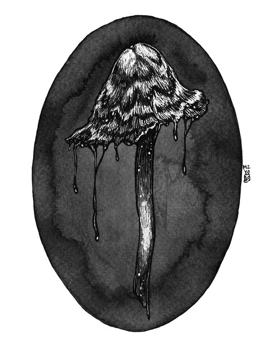 Inky Cap 🖤 I’m so excited to do #funguary !! I’m going to try to do as many as I can 🥰 #inkycap #mushroom #artistsontwitter #artontwitter #myart
