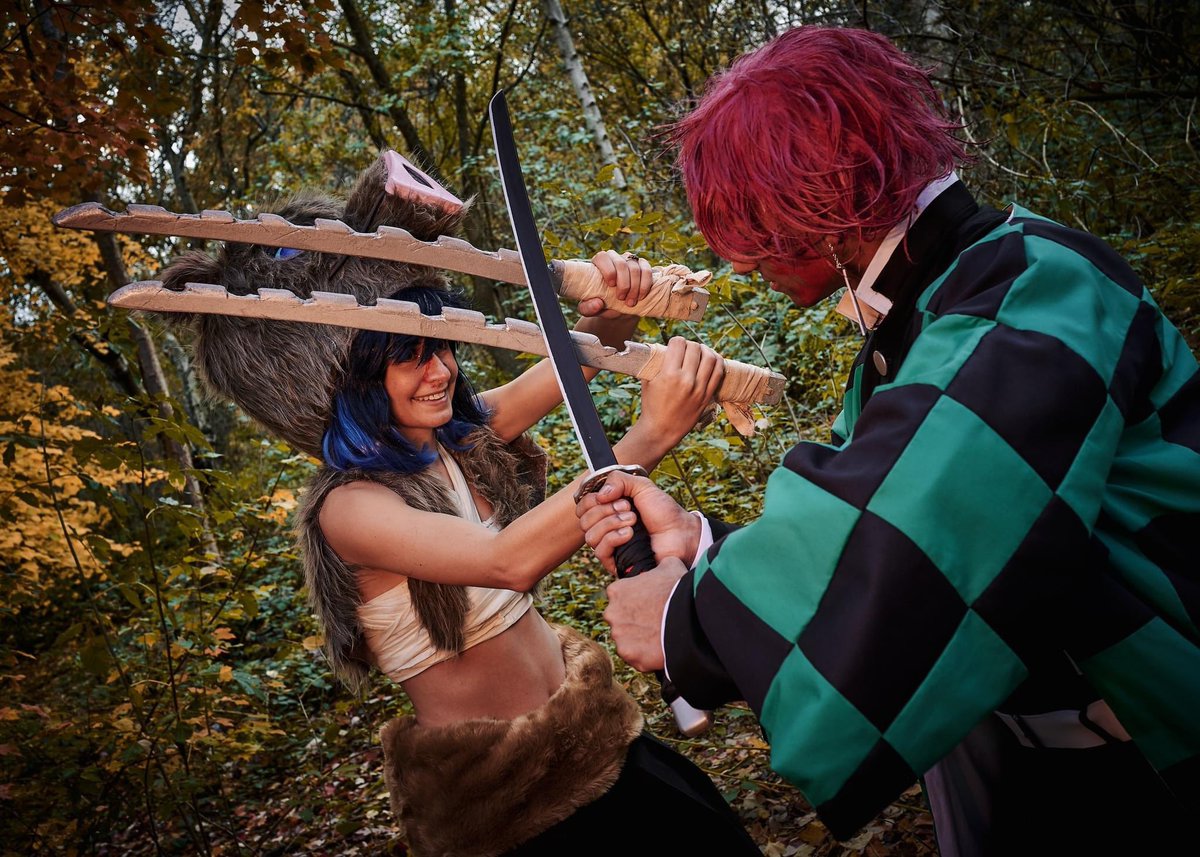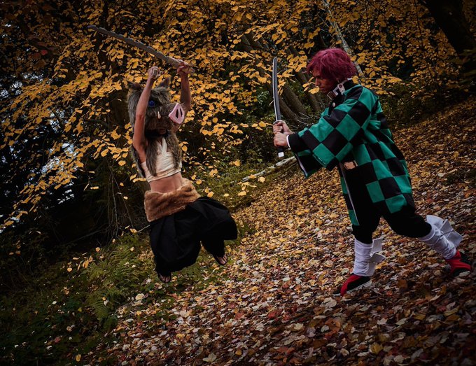 IT'S FIGHT TIME Gazpacho: @teshouu Photo: @alchemistphotographic #tanjiro #tanjirocosplay #cosplay #inosuke #inosukecosplay #demonslayer #demonslayercosplay #kimetsunoyaiba #kimetsunoyaibacosplay #kny #knycosplay