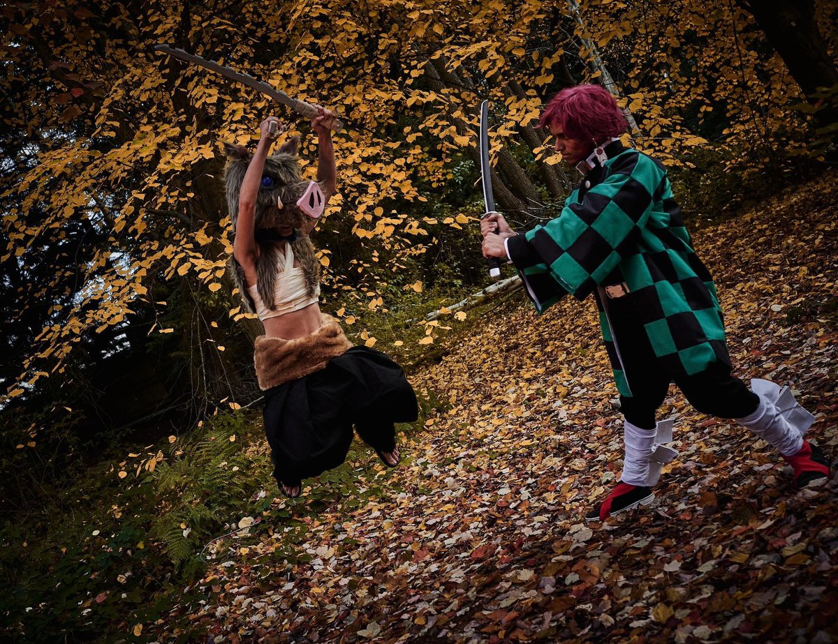 SLICE 'N' DICE!!! Gonpachiro: @teshouu Photo: @alchemistphotographic #tanjiro #tanjirocosplay #cosplay #inosuke #inosukecosplay #demonslayer #demonslayercosplay #kimetsunoyaiba #kimetsunoyaibacosplay #kny #knycosplay
