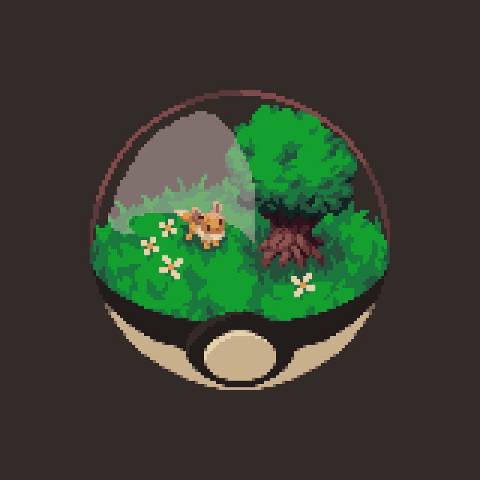 I imagine #InsideThePokeball, the environment would change to suit its Pokemon's type/personality... We collaborated on this one again- I drew the environment and André picked out the Pokemon! #pixelart #pixel_dailies @Pixel_Dailies #aseprite #ドット絵 #ポケモン