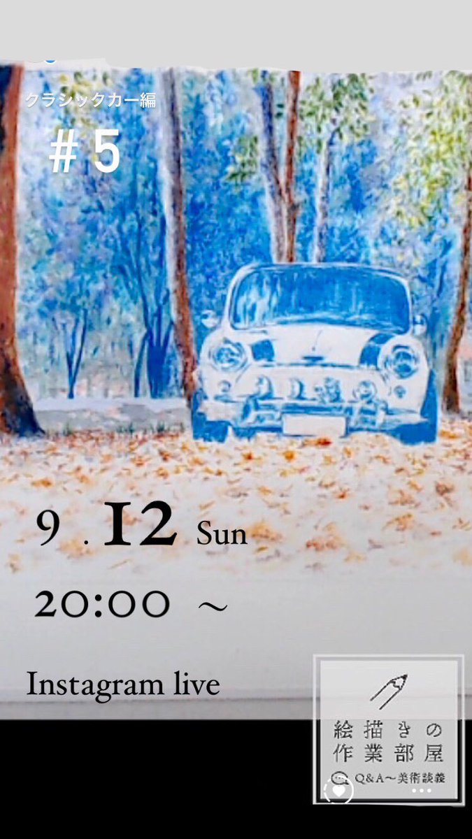 明日9/12 20時~ インスタLIVE instagram.com/kazuyuki_yae/ # 5 クラシックカー編 次回予定をお知らせできずに配信終了してしまい失礼しました!次は明日です。 #色鉛筆画 #InstagramLive