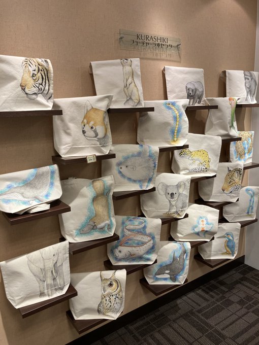 手描きのトートバッグ 岡山県の倉敷天満屋の4階でゆっくり販売中 #動物イラスト #栞 #動物好きな人と繋がりたい #手描き #動物分類かるた #ペットの似顔絵 #種類豊富 #色鉛筆 #動物雑貨 #amimal_illustration #instagramlive #拡散希望 #suzuri suzuri.jp/linlinpostbox