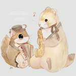 23/4/30 #国際ジャズ・デー #InternationalJazzDay ぐもち〜っ☀️ ジャズを嗜むおもち🎷 初心者だけど、上手く音が出るかな〜? みんなに届くように♪ せぇーのっ、 プーーーーっ✨✨ #おもちの日々 #ジャズ #イラスト #みんなで楽しむTwitter展覧会 #絵本作家
