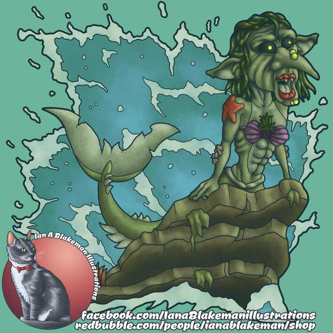 today is #InternationalMermaidDay so I thought would look over some of my old #Mermaid #art the little Goblin mermaid! Can't sing, wouldn't want her too! Available at my #RedbubbleShop rdbl.co/3zZ05t9 #FantasyArt #Goblins #TTRPG #DNDart #DnDCharacter