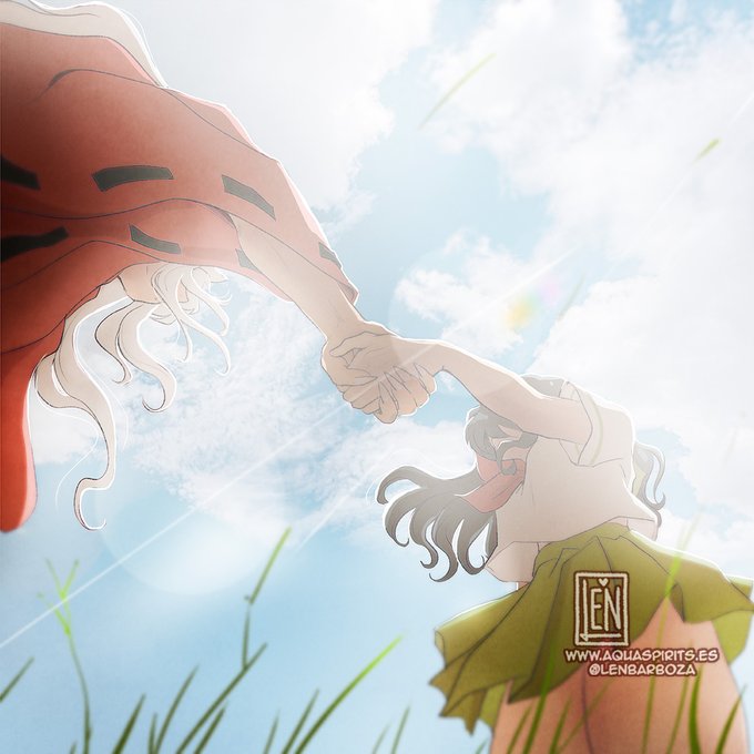 after 3 years we can finally be together 💚❤️ #inukag #inuyasha #inuyasharedraw #inuyashafanart #kagomefanrt #inuyashakanketsuhenfanart #犬夜叉