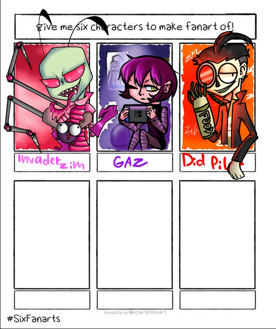 No puedo dormir asi que a terminar AT´s si señor ❤ Y tambien a esperar a los 100 bebes que quieren un dibujo, para entrar esta la publicacion fijada. #arttrade #fanart #oc #originalcharacter #InvaderZim #invasorZim #selfinsert