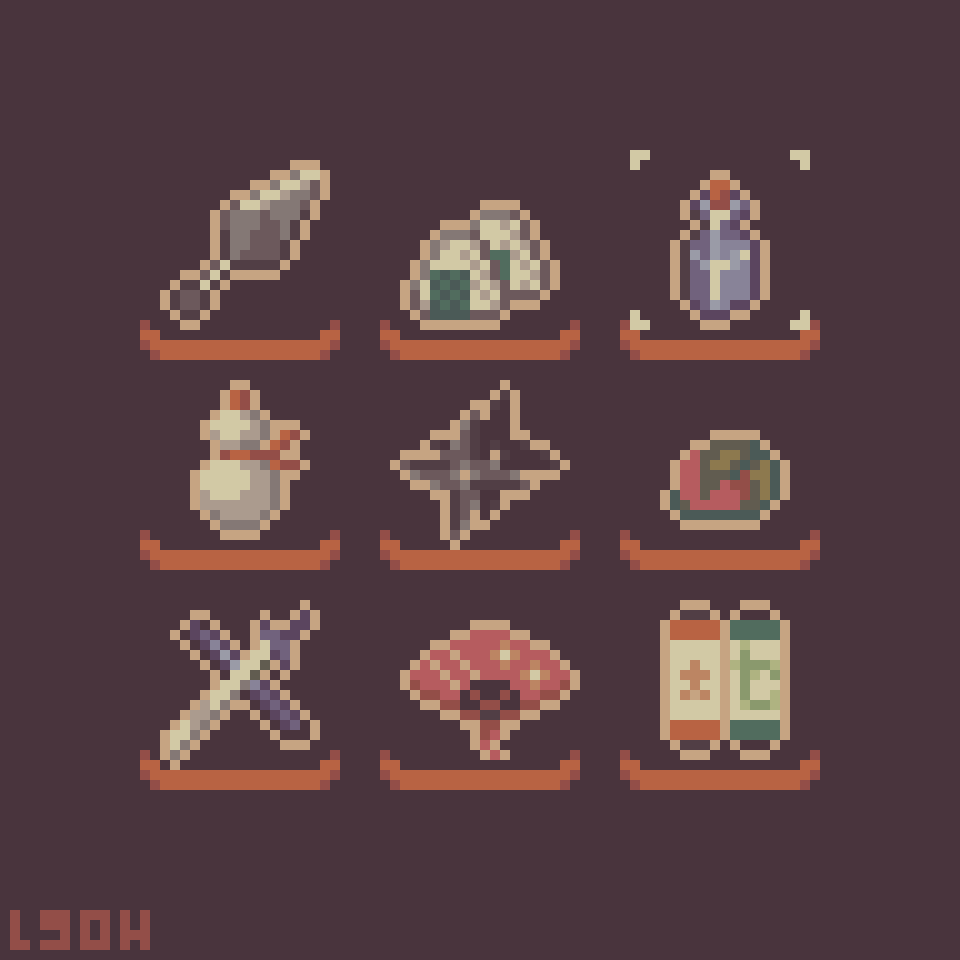 16x16px inventory items #InventoryItems for @Pixel_Dailies #pixel_dailies #pixelart #ドット絵 #aseprite