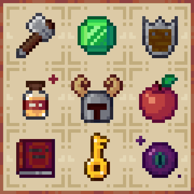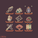 #set of #InventoryItems for @Pixel_Dailies with restriction: 16x16px or less per item. #pixel_dailies #pixelart #pixel #pixelartist #art #artist #8bit