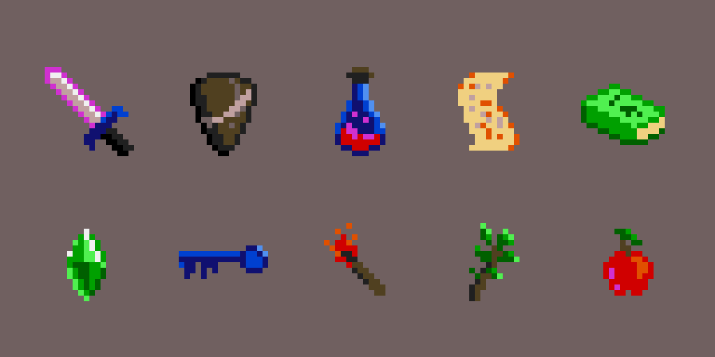 A set of ten #InventoryItems for @Pixel_Dailies Restriction: 16x16px per item #pixel_dailies #pixelart #ドット絵