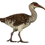 Apteribis was a flightless ibis from Hawaii with tiny wings. Preserved feathers indicate it was mottled brown, suggesting it could be paedomorphic. With a long probing bill, it may have been Hawaii's equivalent of a kiwi. #IslandFaunaWeek #paleoart [3/n]