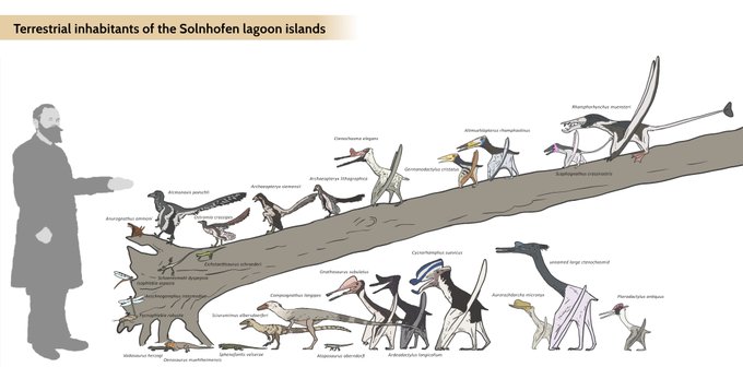 There we go! The famous Solnhofen limestone yields up to this day new species and gives up a unique look into the live on small arid islands during the late Jurassic. @LikesPterosaurs contributed here the already scaled skeletal reconstructions. #IslandFaunaWeek #paleoart