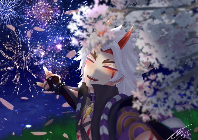 I worked really hard on this, but finally, it's complete! A drawing of the one and oni; Itto! #GenshinImpact #genshinimpactfanart #aratakiitto #ittofanart