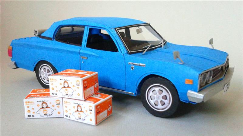 フルスクラッチ1/40スケール1972年式 #日産 #ダットサンピックアップ 1500デラックス。 70年代の柔らかな曲線は難しい。私の好きな #静岡県沼津市 舞台の #ラブライブサンシャイン の #JAなんすん みかん箱をアクセサリー。 沼津ナンバーも。 #ペーパークラフト #papercraft