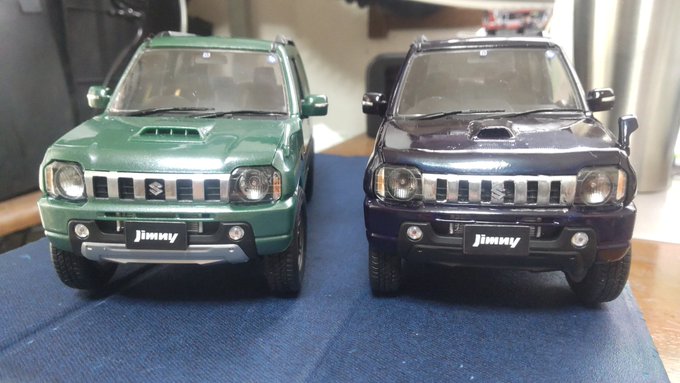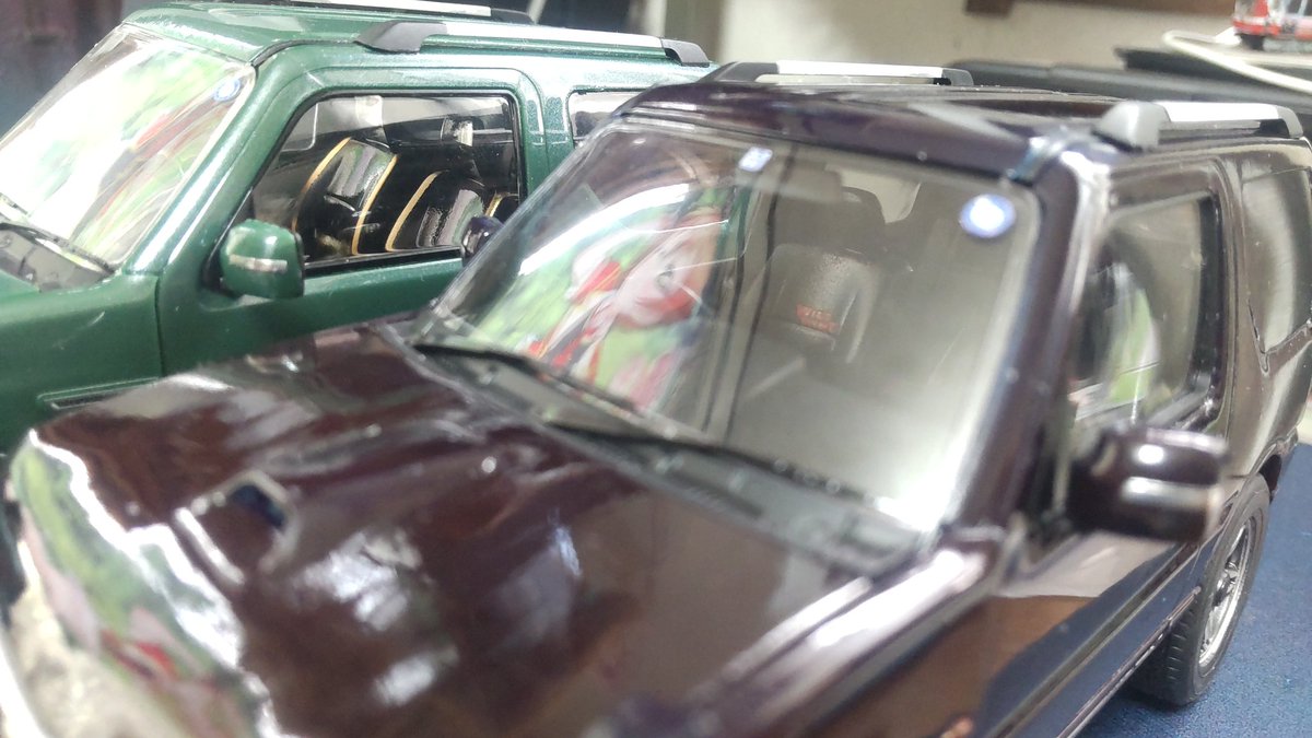 細かいところはモドキですが、フジミのJB完成しました。フロントグリルの7本化、ボンネットインテークの小型化、フロントシートのヘッドレスト形状変更、形状変更、サイドマーカー部の形状変更、フォグランプのレンズ追加、ミッドナイトパープルの外装が主な変更点 #JB23 #今月作ったプラモ晒そうぜ