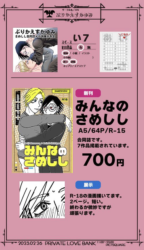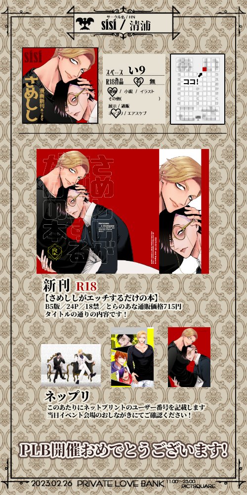 #JB_PLB226 2/26 PRIVATE LOVE BANK お品書きです🥳✨ 【 さ7 】Birds ネップリ、展示漫画、エアスケブです! Webアンソロにも参加させて頂いております🥺💖 めいっぱい楽しみましょ〜☺️✨✨ よろしくお願いします🙌💓