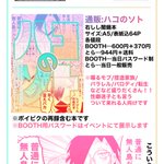 お品書きです。 サークルカットには小説展示とありますが、漫画になりました。 新刊はとらのあなでシークレット販売、展示はポイピクで、いずれもパスワードを当日公開します。 どうぞよろしくお願いします! #JB_PLB226