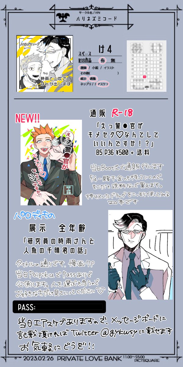 #JB_PLB226 2/26お品書きです〜!新刊漫画と展示 間に合わせます…当日お品書きとポイピクの説明にパスワード載せます エアスケブは当日もアナウンスしますが書き込みボードに記載いただければツイッターに後ほど載せます 間に合わなかったら後日になる可能性があります、よろしくお願いします!