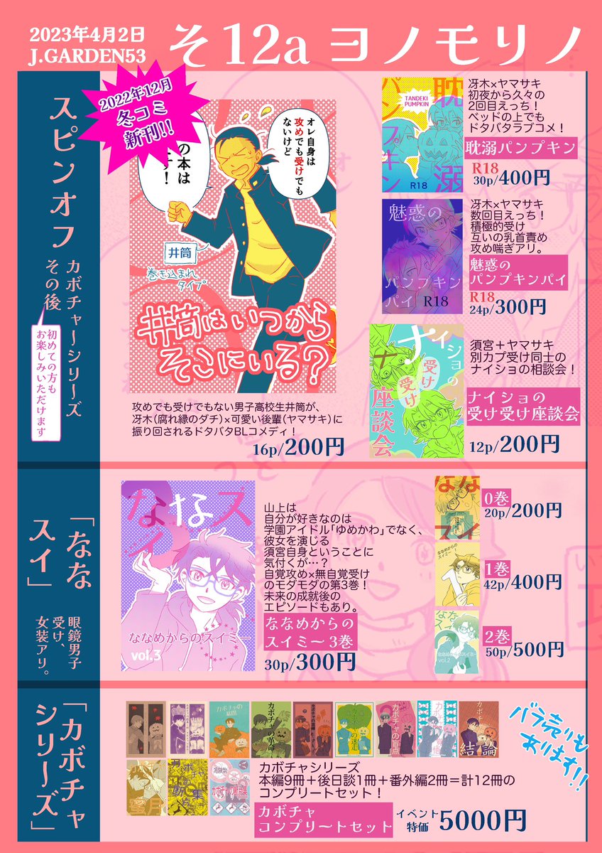 4/2 J.GARDEN53 あ11b 篁アンナ|お品書き 新刊のサンプルは後程アップします✨当日は私もちょっとだけ行きます☺️💕楽しみー! #創作BL #J庭53 #JGARDEN53