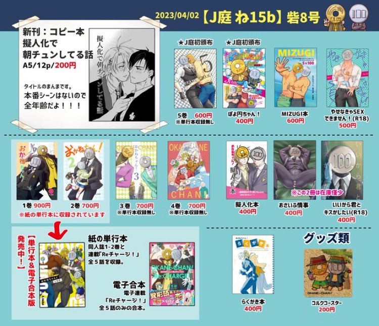 以上が 4/3 #JGARDEN53 の05b #獣人サークル「HEMOMO」のお品書きです! 新刊は当日より以下のサイトで通販開始予定です! よしなに!!!😀✨ #J庭53 #創作BL 通販 hemomo.com/shop/