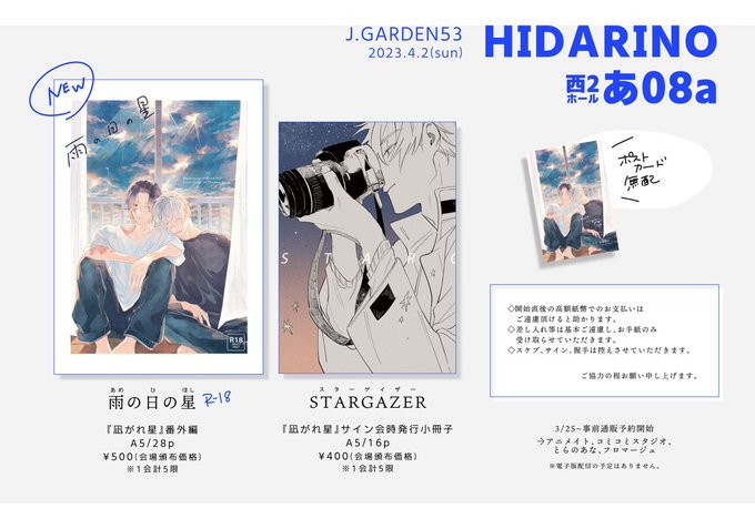 -`📢🐻❄ 2023/4/2 #J庭53 お品書き スペース【あ34b】で参加します! 当日は画像下の注意事項をご一読の上お越しください 新刊サンプルや通販の案内はリプに繋げます👇🏻 #JGARDEN53 #創作BL