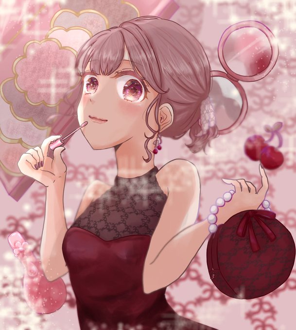 『一晩の魔法』 お気に入りのコスメでメイクするだけで、世界一可愛いくなれた気持ちになるよね♡ Jillのホリデーコレクション、デザインもテーマも可愛すぎる🍒 #ジルシュチュアート #ミッドナイトチェリーコレクション #JILLSTUART #オリジナルイラスト #イラスト #イラスト練習