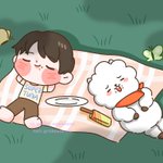 I love doing dtiys! Jin and his son RJ are enjoying a break after lunch! The original fanart is cute too! #jinn1stDTIYS #JINN1STCTIYS #DTIYS #btsfanart #BTSJIN