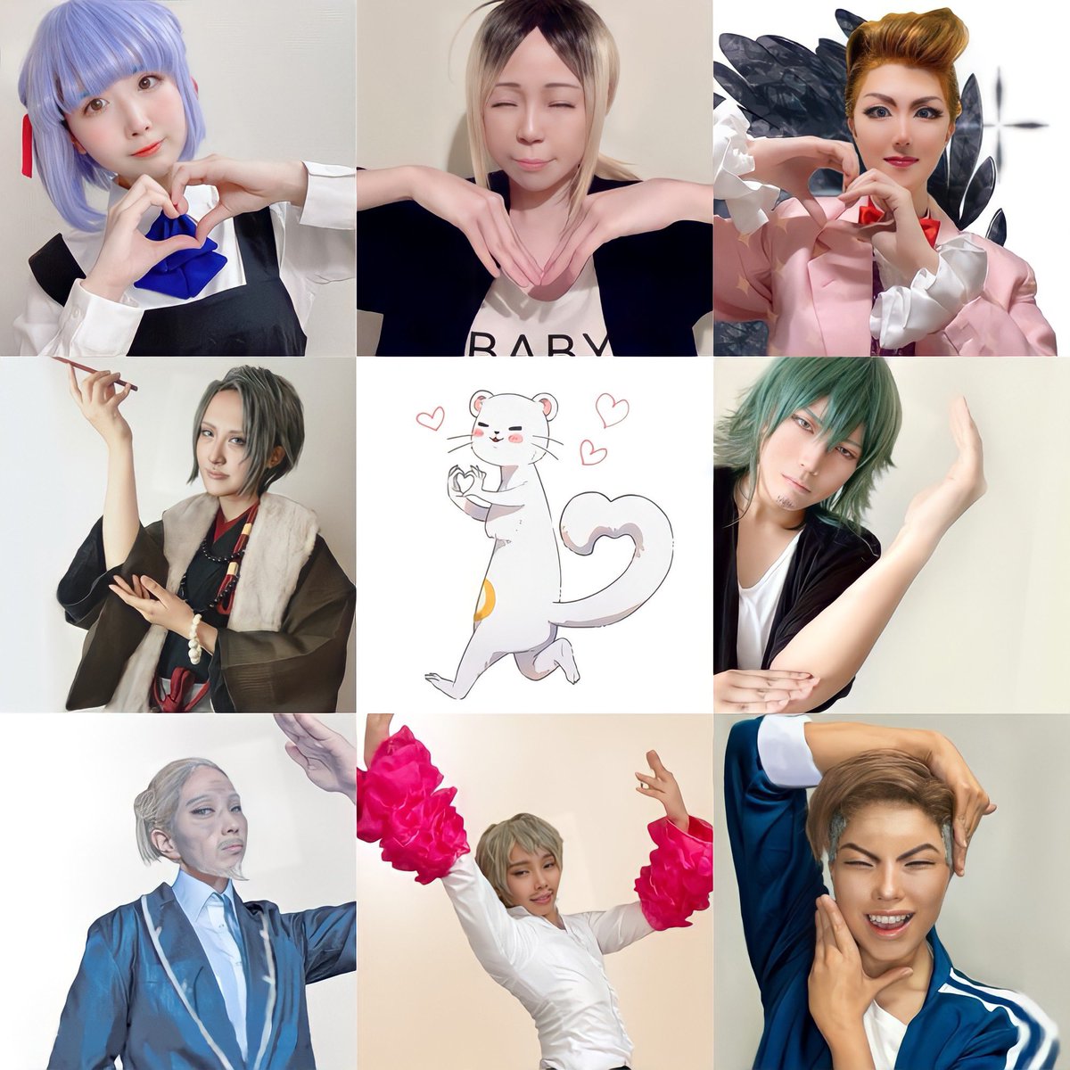 #JJ舞台裏のエア併せ ジャックジャンヌを彩る魅力的なサブキャラクターたち! 力を合わせてハートを作りました! みんな誰か分かるかな!? (答え合わせはツリーへ!) #ユニヴェール仮装部