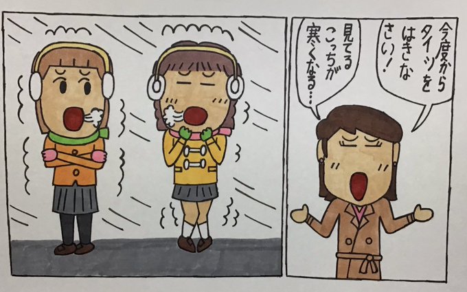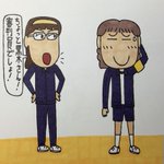 「#JKアキ子ちゃんイラスト」です。体育の後におやつを頂くアキ子ちゃんとゆめちゃんです。アキ子ちゃんはポッキー派でゆめちゃんはプリッツ派です。「お菓子で青春JK」でした。#11月11日 #ポッキープリッツの日 #女子高生 #体育 #ポッキー #プリッツ #イラスト