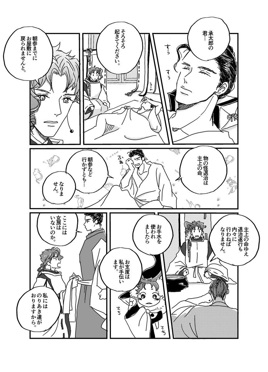 #JKonlinefes1127アフター pixivにUPした陰陽師パロの恋に落ちる編を貼ります。めちゃ長いですけどpixivより解像度がいいかなと…川に落ちたあとのお泊まりから始まります🦊