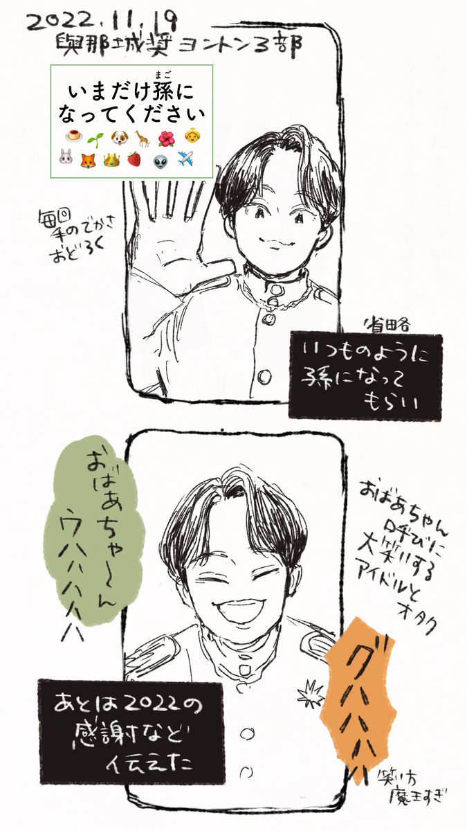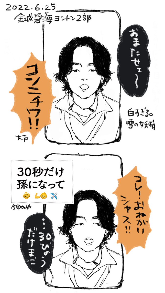 Nikkoちゃん (@peanutbataa247) の豆トンが可愛くて、詳しい話聞いてイラストで想像してみた!🥰🥰🥰 フルレポはリプで!⬇️ #JO1ヨントン #JO1ヨントンレポ #豆原一成 #ビーンウッドさん #jo1fanart