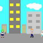 めだアビのキャラ達は人間サイズだ!っていうけど、人がでる作品では手乗りサイズで出る時もあるぞ! (右二つはヲタローの発明品で人世界に転移したっていう設定のヤツなのでメカの副作用的なアレで小さくなってる) (左のは普通に車に轢かれて異世界転生したのでそのままサイズ) #JPの先取りおえかき