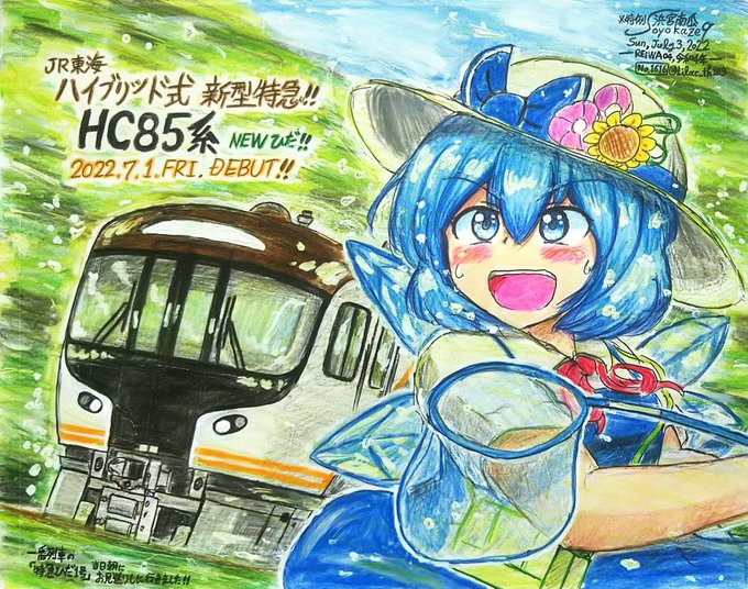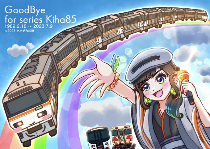 🚃#さよならキハ85系 🚃✨ (キハ85系×綿雲ひろぴ🌤) 東海のキハ85愛が溢れる特別な編成をアニメのエンドカードぽく描きました。 印象強く残る勇姿に🫡✨ #あおぞら鉄道 #あおぞら鉄道4番線 #JR東海 #イラスト #キハ85を愛でる