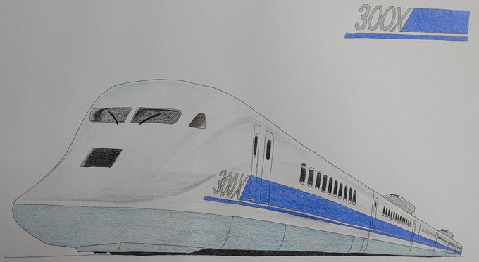 伝説の新幹線 [300X]こと955形試作新幹線を描きました! カプス型の流線型が特徴的な顔! #JR東海 #描き鉄 #955形 #イラスト #イラスト好きな人と繋がりたい #絵描きさんと繋がりたい #模写 #色鉛筆