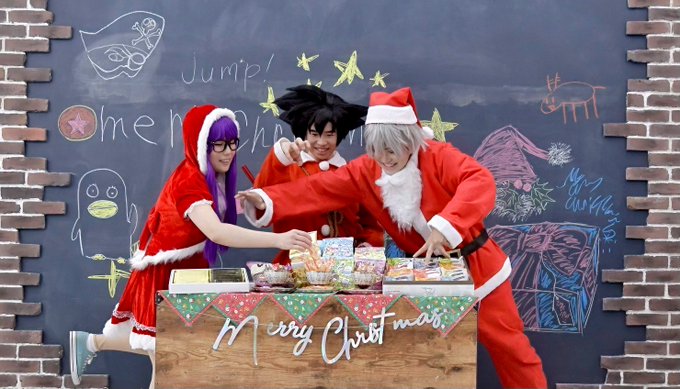 ♡cosplay♡ 💜🖤🤍 "クリスマスパーティー準備完了🤩" 💜🖤 "よし、おかしたーべよ😋" 🤍 "ちょっと待ったああああ❗️❗️❗️" 悟空🖤 @IdaLuffy イダさん 銀時🤍 @cos_RVIchan0605 リビイ 📸 @A_HORI_HORI よいしょっとさん #JUMP主人公併せ #コスプレ ⚠️捏造 #サンタコス