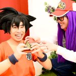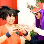 ♡cosplay♡ 💜"おにぎりみーつけた🍙🤩" 🖤"やらねーぞ‼︎これはオラのおにぎりだ‼︎" 悟空🖤 @IdaLuffy イダさん 📸 @kayochin123456 かよちん☆さん #JUMP主人公併せ #コスプレ