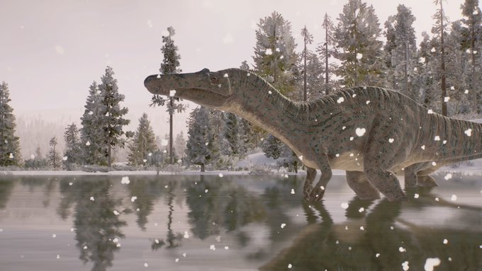 Suchomimus enjoys a snowy paddle. @JW_Evolution #jwe2 #digitalart #digitalphotography #dinosaur #suchomimus #christmas #snowy #jurassicworld #jurassicpark