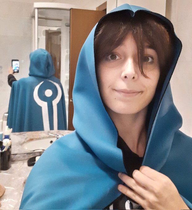 Hood and cape almost finished! Then I'll have to add all the white decorations ... wish me luck (admire my absolutely natural eye bags 😴😴) #MagicTheGathering #cosplay #jacebeleren